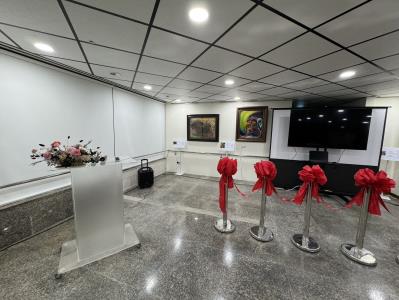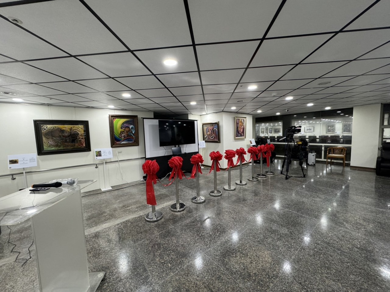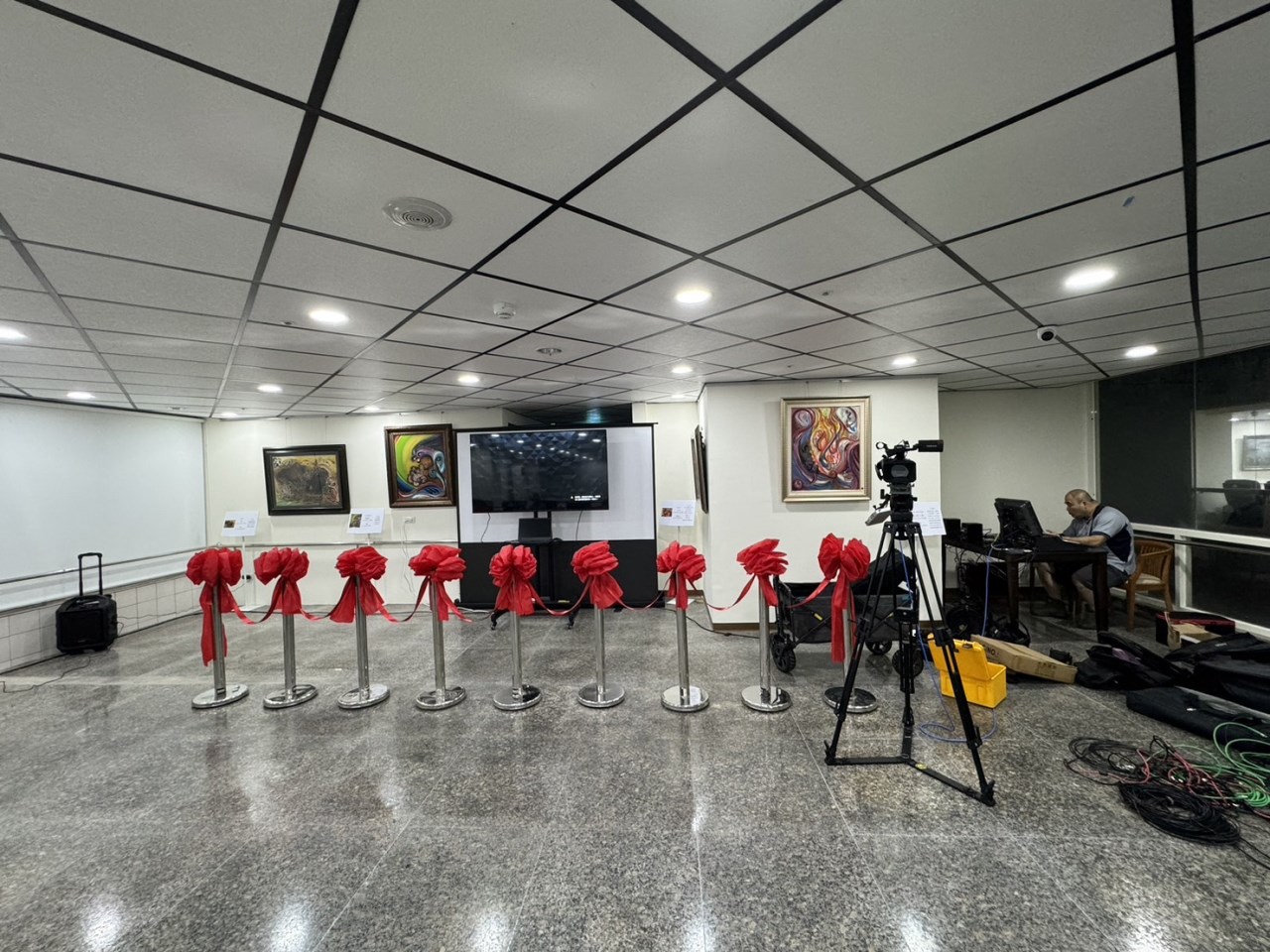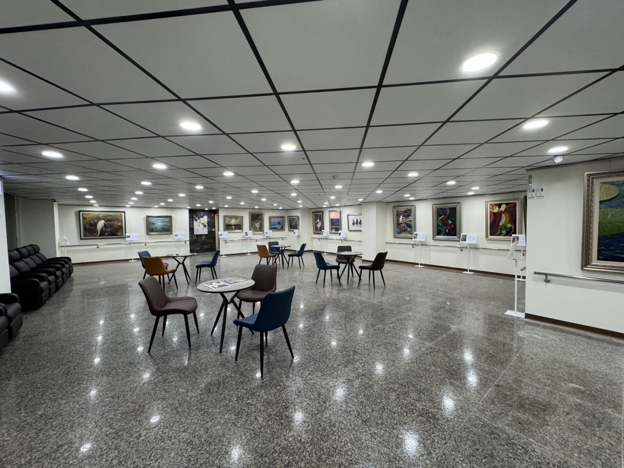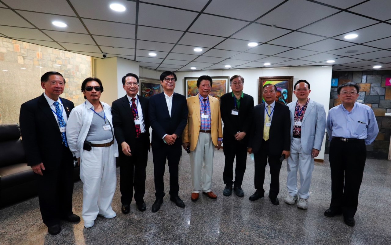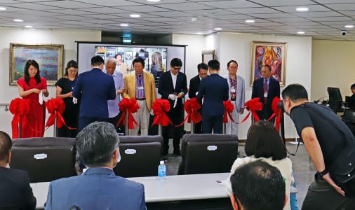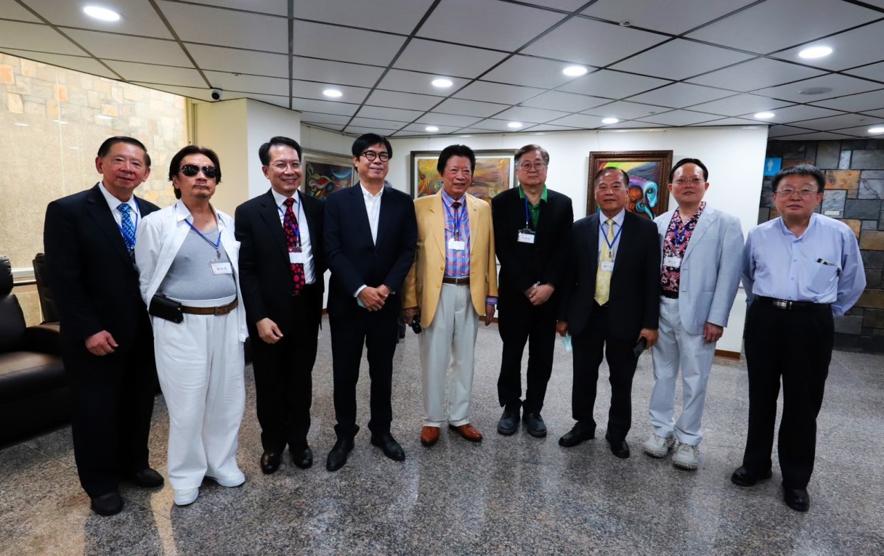 「施哲三博士八十五油畫回顧展1.0活動」 在港都長照中⼼(高雄市九如二路112號) 2 樓的會議展演廳剪綵後展開。高市長陳其邁、資政姚嘉文、杜聰明博士獎學基金會董事長杜武青、主持人廖筱君、台灣高醫大全球校友總會理事長陳國昭、副理事長黃立宏、高市美術館館長等進行剪綵。