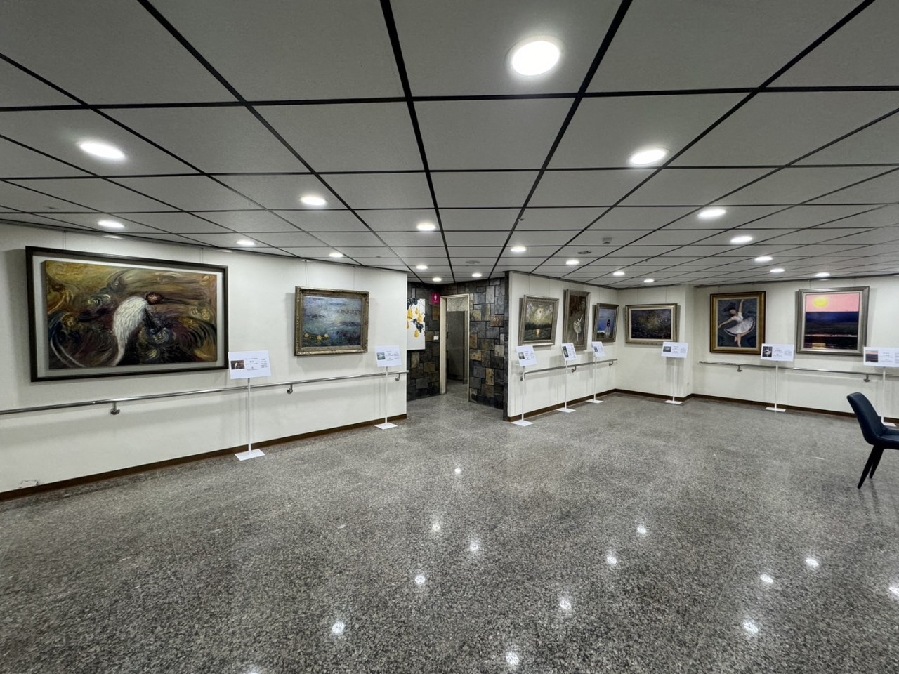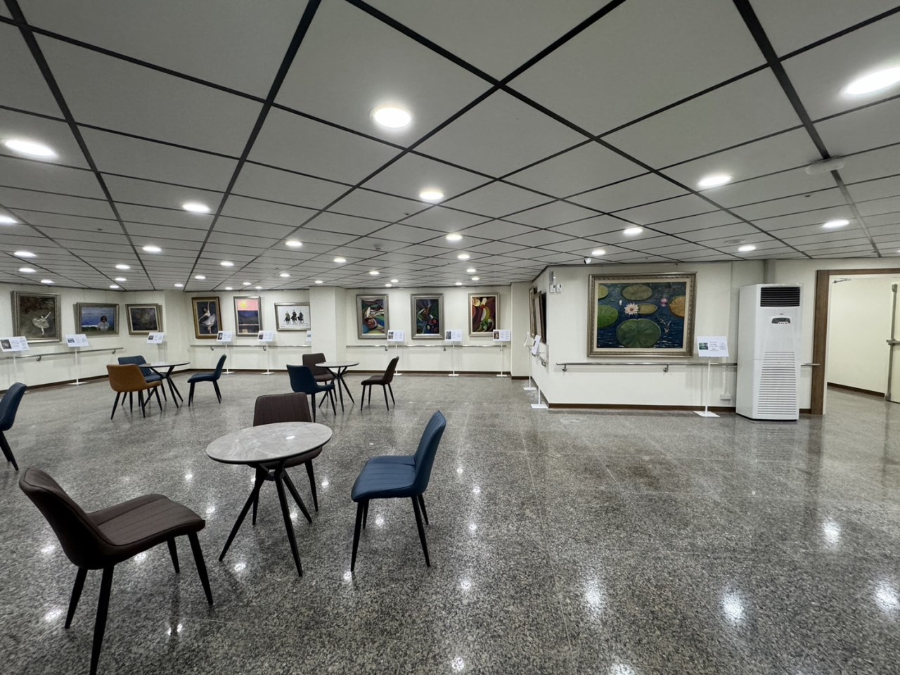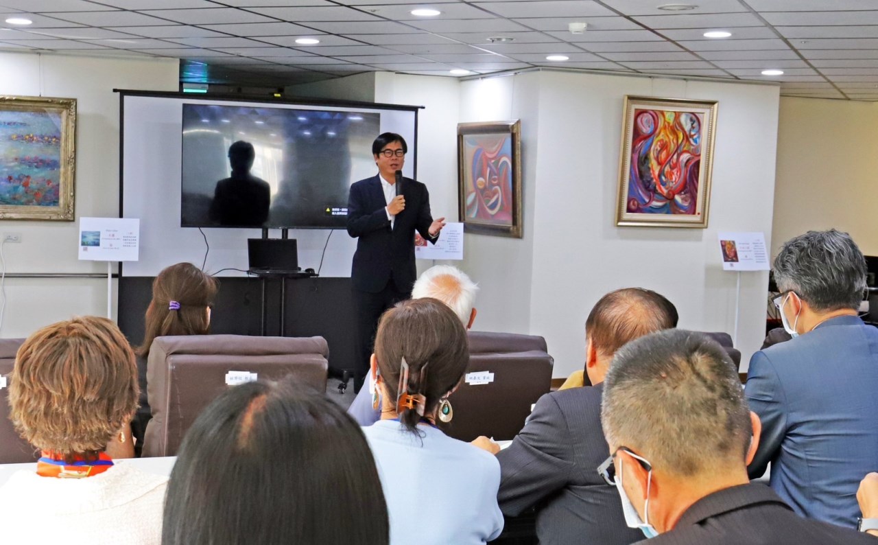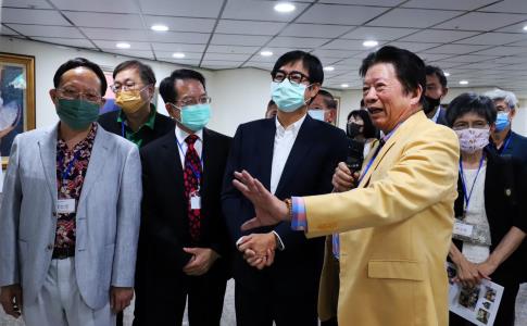 「畫中有詩 詩中有畫」今尤值一提的是,施哲三每幅油畫作品深具內涵,都有故事外,有詩仙美譽的黃立宏醫師也畫作譜寫詩詞,今在導覽畫作時並當場吟誦詩詞,博得陳其邁市長熱情掌聲肯定。